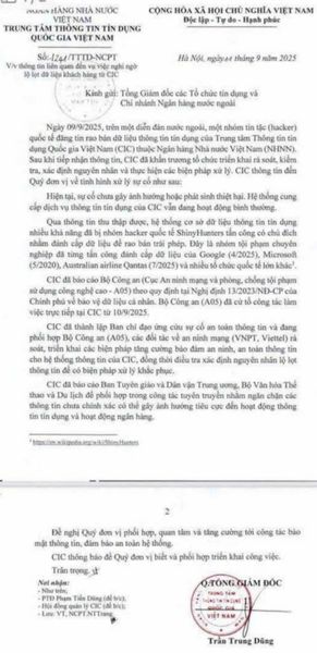Ngày 24/8/2025, cộng đồng an ninh mạng quốc tế chấn động trước thông tin nhóm tin tặc ShinyHunters tuyên bố đã xâm nhập và sao chép hơn 160 triệu hồ sơ từ hệ thống Trung tâm Thông tin Tín dụng Quốc gia (CIC) – đơn vị trực thuộc Ngân hàng Nhà nước Việt Nam.